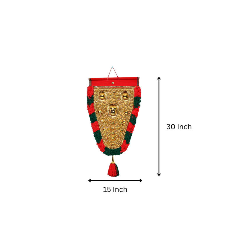 Own a piece of Indian heritage. This Netipattam, meticulously handcrafted from velvet, canvas, red and green threads, and embellished with golden intricacies, is a symbol of Kerala's vibrant culture. Traditionally adorning elephants during festivals, it represents wealth and good fortune. A truly unique dcor piece that showcases incredible artistry.Velvet, Canvas, Threads, and Golden embellishments