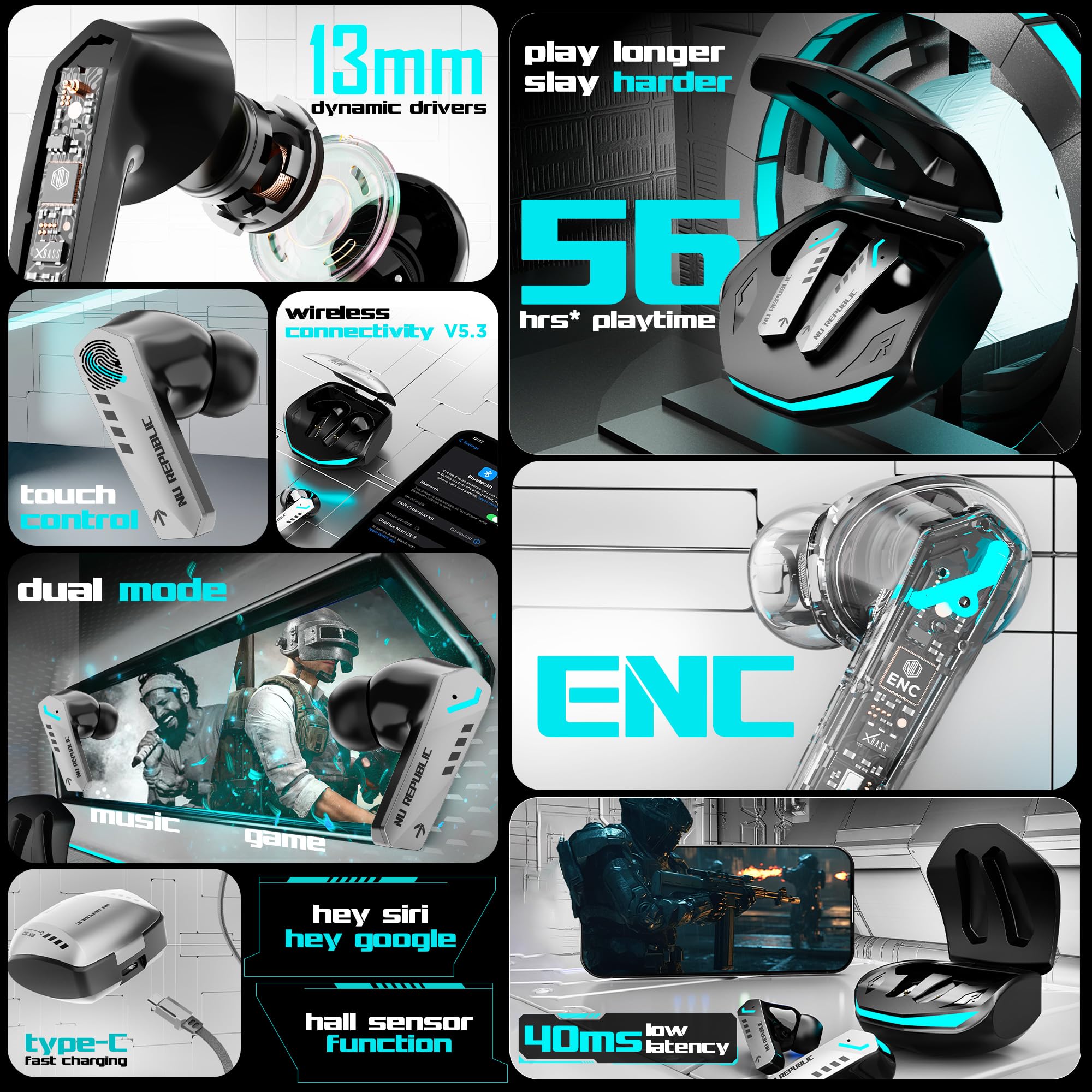 Portronics Twins S16 & Clean U 24 Hour Playtime, LED Display, Low Latency, Type C Fast Charging