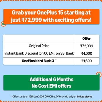 Power On. Limits Off - Meet the OnePlus 15, Indias first smartphone powered by the Snapdragon 8 Elite chipset. With advanced 360 cooling, ultra-fast RAM, and high-speed storage, experience gaming, multitasking, and performance that never slows down.Tri-Chips for Ultimate Performance - With a blazing 165 Hz refresh rate, the OnePlus 15 features the OP Gaming Core engine, a dedicated G2 WiFi chip and a highspeed touchresponse chip for ultralow latency and flawless control.Meet Plus Mind - The worlds first AI tool built to work seamlessly with Gemini. It intelligently captures, organizes, and recalls everything you see, so every idea, date, or detail is always within reach. Plan trips, surface information from screenshots, and relive moments effortlessly all from your Mind Space app, powered by OnePlus AI.Go further, faster - The massive 7300mAh(typ)battery delivers exceptional battery efficiency. With 120W SuperVOOC wired and 50W AirVOOC wireless ultra-fast charging, OnePlus 15 is engineered to keep pace with your busiest days and boldest adventures.Capture the world like a pro - The OnePlus 15 introduces Androids first 4K 120 FPS Dolby Vision video bringing cinematic slow motion to life with stunning brightness and depth. Powered by a 50 MP triple camera, a 32 MP front lens, and the DetailMax Engine, every shot stays crisp, vibrant, and true to life, in low light, high speed, or broad daylight.The most complete IP ratings in the industry - With 4 IP ratings - IP66/68/69/69K & Gorilla Glass Victus 2 - OnePlus 15 is ready to take on anything that life throws at it. Be it rain or shine, your phone is always protected.