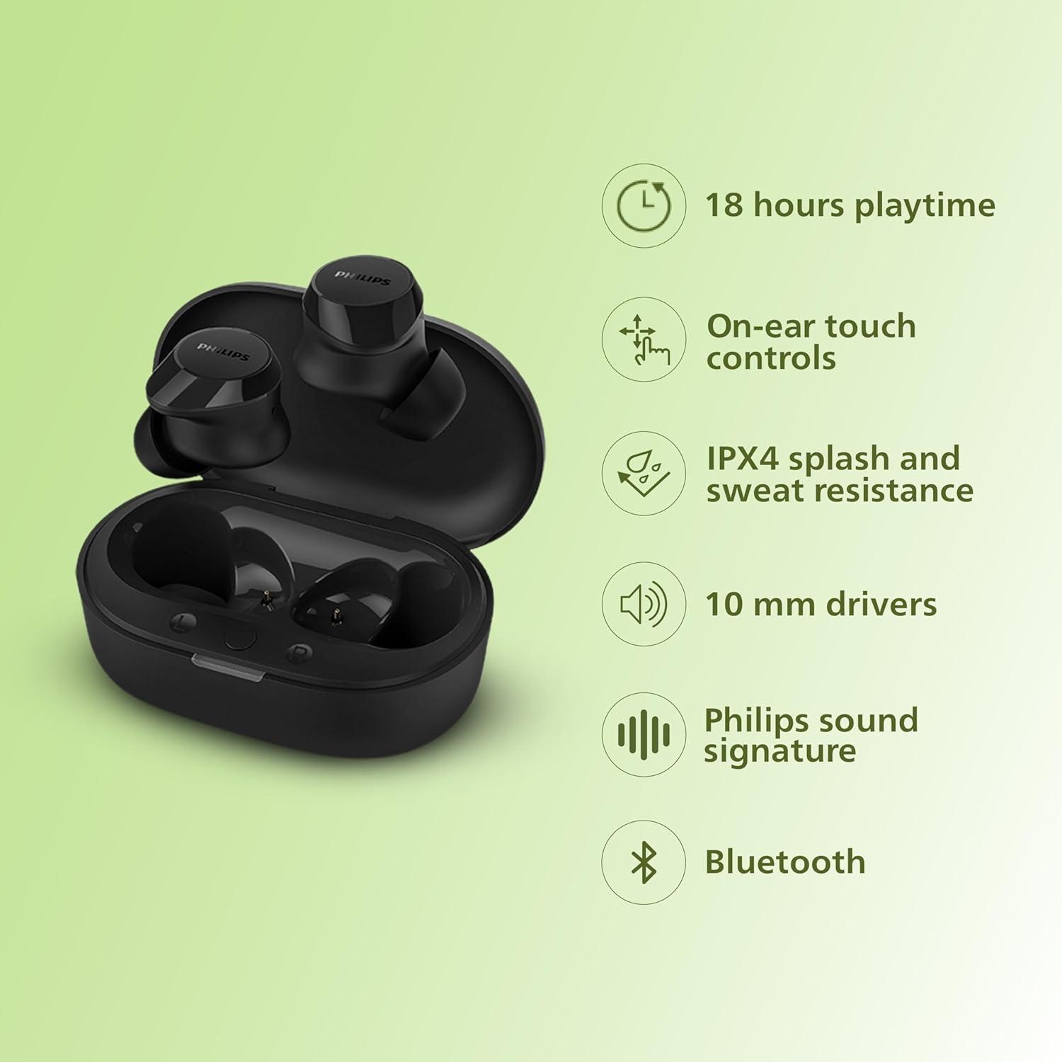 Portronics Twins S18 Pro in Ear TWS Earbuds with 30H Playtime, in Built HD Mic, Game/Music Mode, 13mm Dynamic Driver, Low Latency, Touch Control, Type C Fast Charging, Light Weight, Comfy Fit - Black