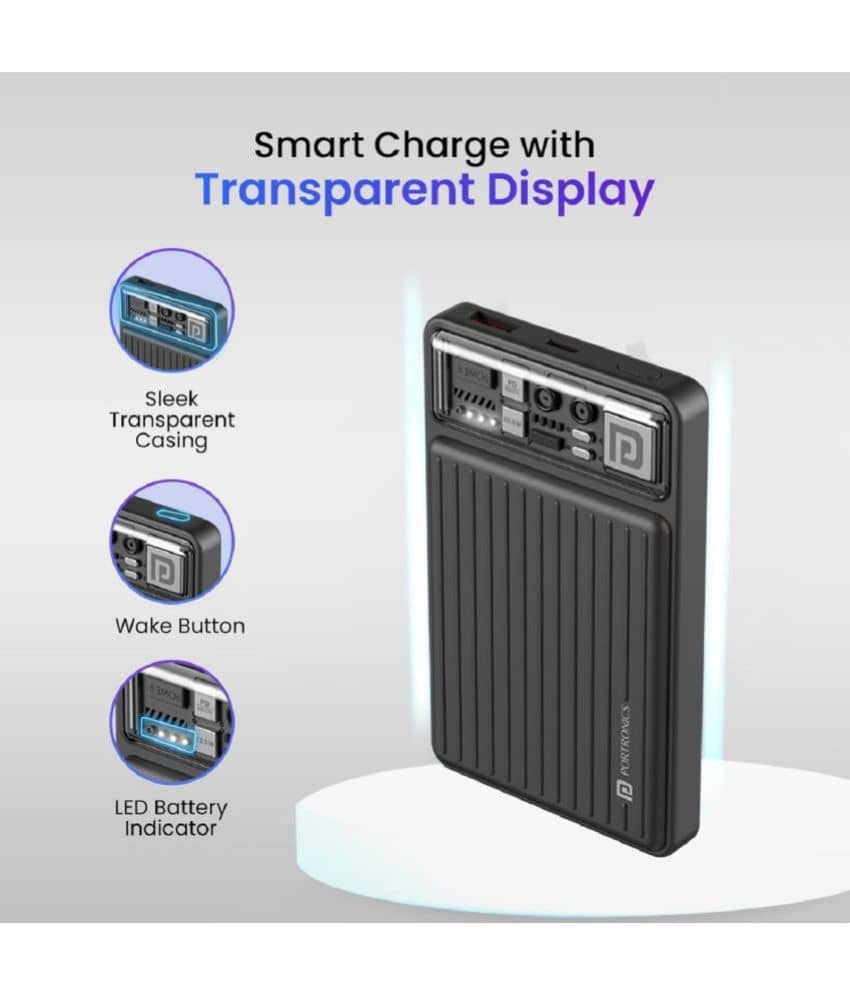 Portronics Aqua 65, 20000mAh Battery, LED Display, Type C in Built Cable, For Smartphone, Laptops & Tablets