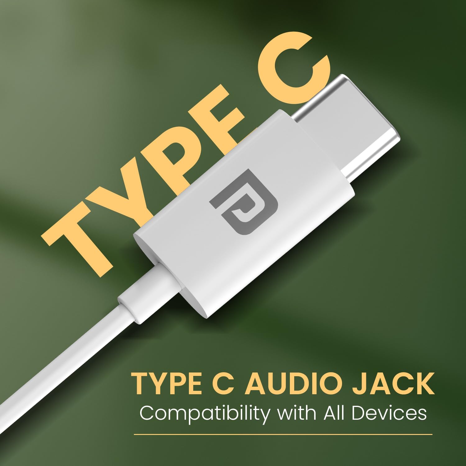 Portronics Conch Theta C, Type C Audio Jack, Unique Earbuds Design, 14.2mm Dynamic Driver, TPE Anti Tangle Material - Orange