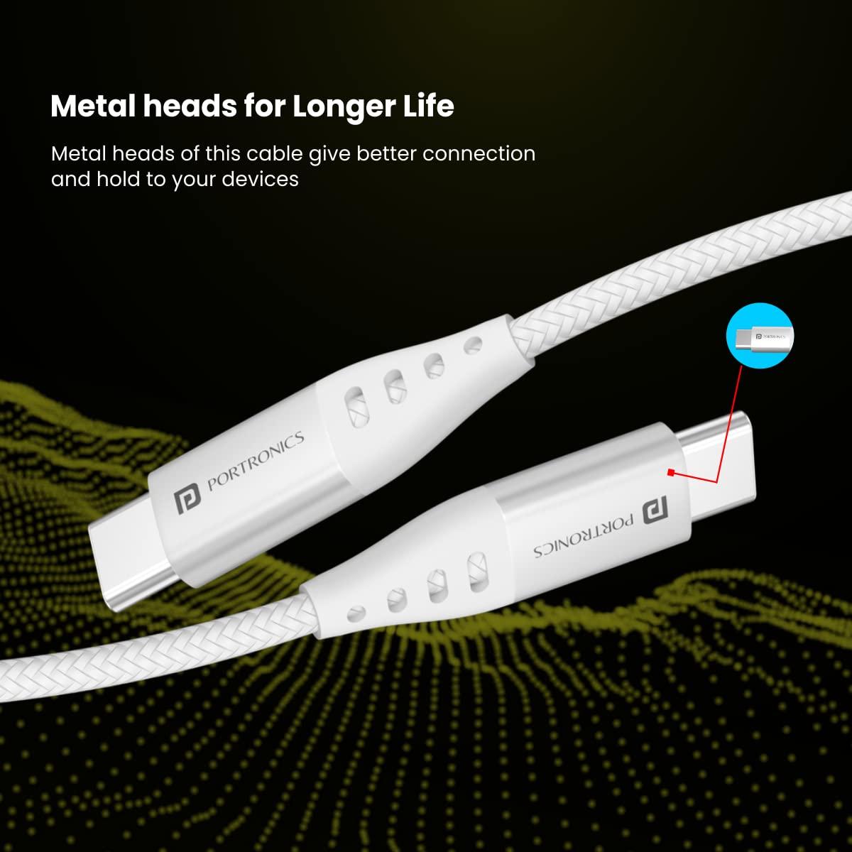 Portronics Flash C Type C To Type C, 100W Fast Charging Cable, 20GBPS Data Transfer, 1.5M Cable Length, Strong Braided Cable
