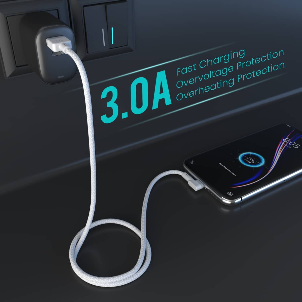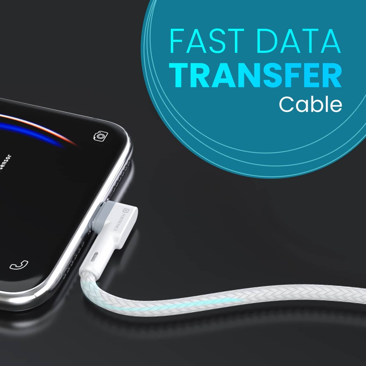 Portronics Konnect Link USB to 8PIN Fast Charging Cable with iOS Compatibility, 3.0A Output, 480Mbps Data Transfer, 1M Length White