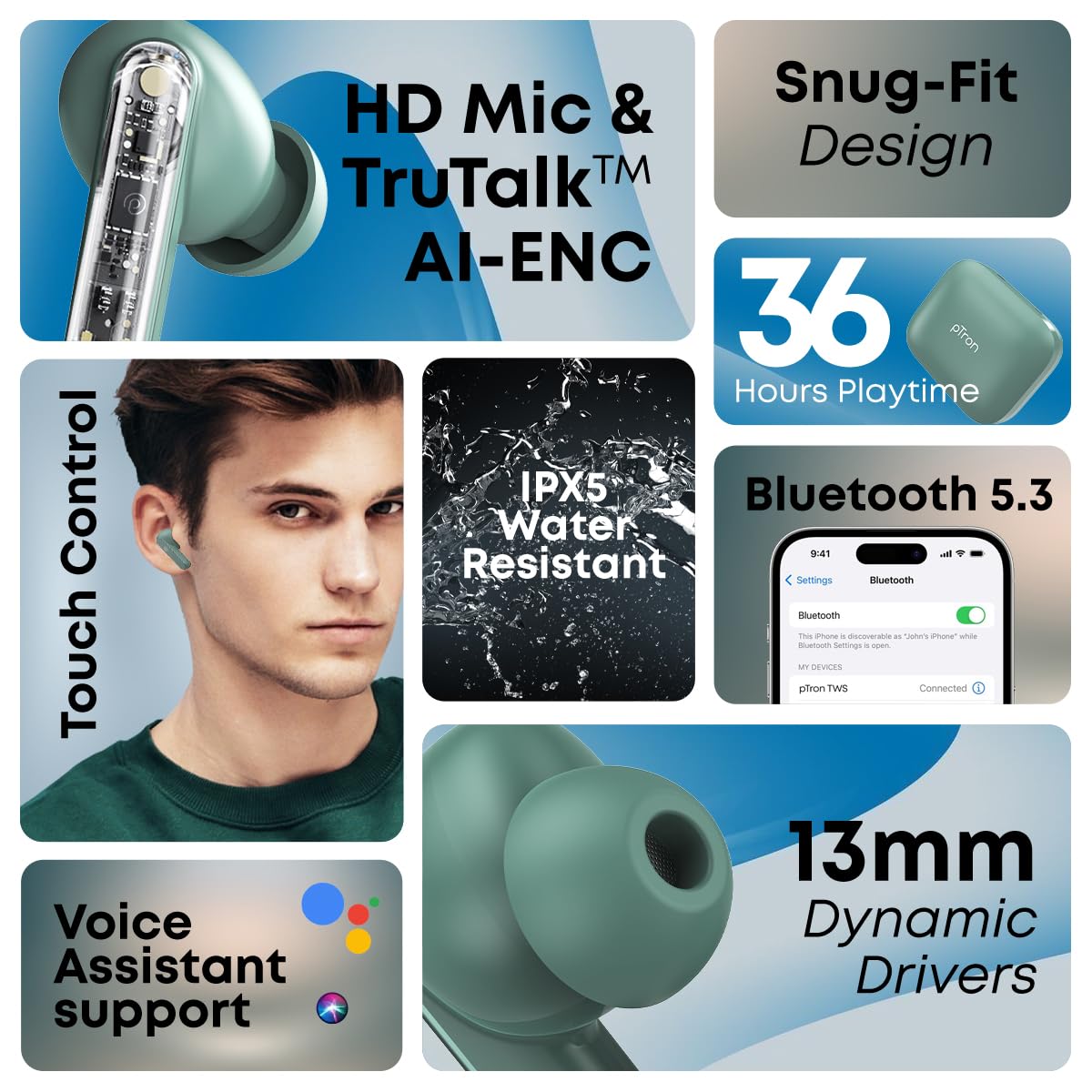 Portronics Twins S16 & Clean U 24 Hour Playtime, LED Display, Low Latency, Type C Fast Charging