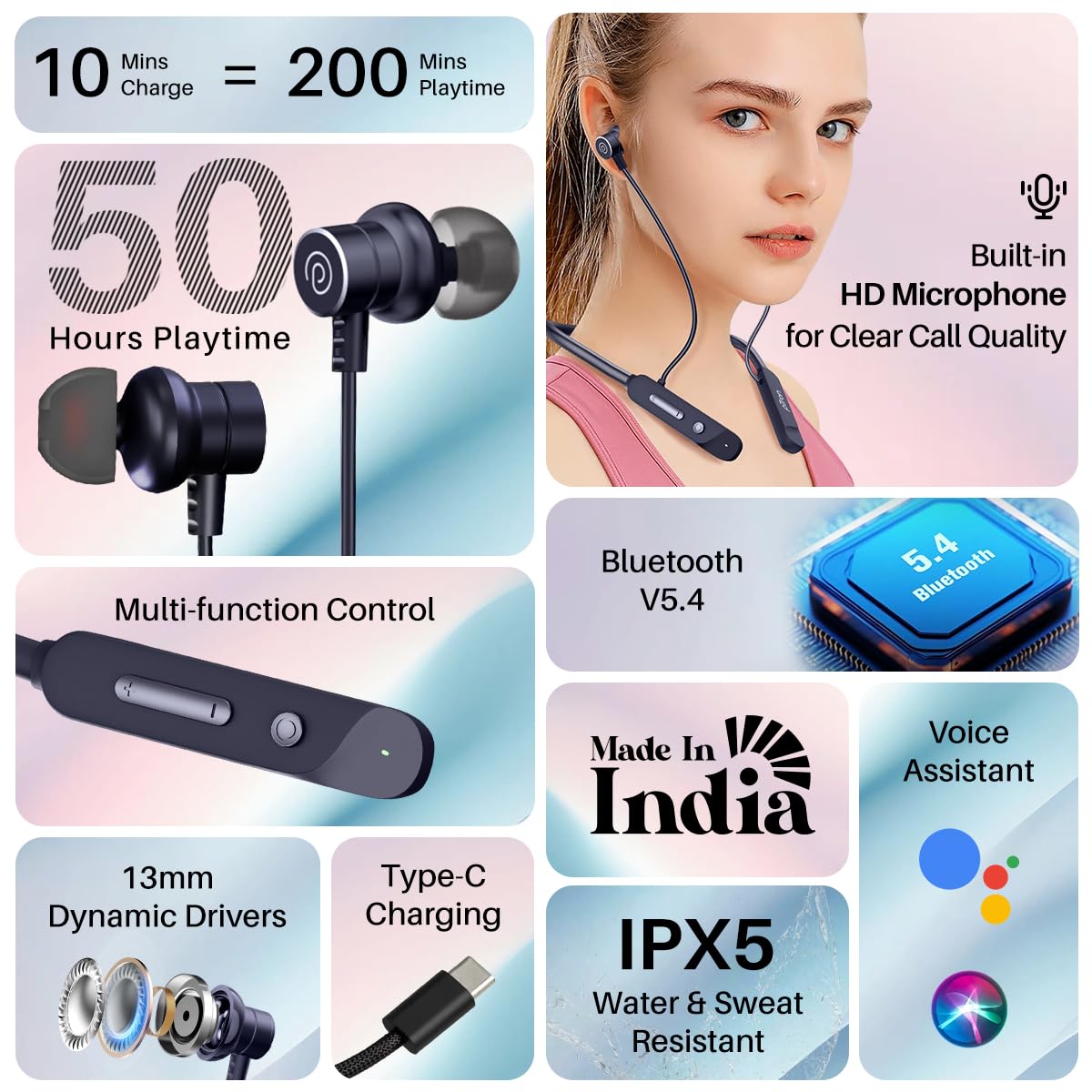 Rockerz 255 Neo Wireless Bluetooth Neckband Work from home doesn’t have to be boring. Presenting, Rockerz 255 Neo – our dope new Bluetooth wireless neckband. The ENxTM Technology will give you a crystal clear calling experience. The battery will never be a problem with ASAPTM Charge & Magnetic Smart Buds. Get 10 HRS of playback with just 10 MINS of charge and save battery with intuitive on/off. Take a break from your hustle and indulge in gaming as these wireless neckbands are equipped with BEASTTM Mode that offers low latency. Enjoy a powerful playback of 25 HRS that lets you binge-watch your favourite series without any disturbance. The 12mm drivers will transport you to another world while you seamlessly stay connected with Bluetooth v5.2. With its secure fit & IPX6 Sweat & Water Resistance, meet your fitness goals without worry. Its built-in hands-free calling & instant voice assistance work together to make life easy for you. Grab it in dynamic colours and let ‘em be #AlwaysOnYou. Rockerz 255 Neo When the hustle is always on, it also calls for some moments of quiet. Moments that let you sync with your environment. Moments that let you reflect, reconnect, and rediscover. So get ready to hear and be heard, clearer than ever. ENx™ Technology The perfect sync of our noise cancelling algorithm and environmental noise cancellation technology helps provide a clear calling experience. Be heard as good as in-person with Rockerz 255 Neo. Magnetic Smart Buds: Intuitive ON/OFF The built-in magnetic sensor can detect whether the earphones are in use or not. This intuitive user experience helps disconnect and power off when the earphones are not in use for longer battery life. They reconnect and get you back to your music or calls once you wear the earphones back. This Intuitive User Experience helps disconnect and power-off when the earbuds are kept united for longer battery life and reconnect and get you back to your music or calls once you wear the earphones back. ASAPTM Charge: 10 MINS charge = Up To 10 HRS Playback Get 10 HRS of juice with just 10 MINS of charge & never miss a moment. Rockerz 255 Neo is ready to accompany you in your fast-paced life. Total Playback: 25 Hours Be it a long workday or a binge-watching weekend, we’ve got you covered. With up to 25 HRS of playback when fully charged, you will never run out of what drives you to be more. Bluetooth v5.2 with Dual Pairing Switch between devices and enjoy flawless, interruption-free listening with Bluetooth v5.2 technology and Dual Pairing. BEASTTM Mode Bionic. Engine. And. Sonic. Technology. decoder significantly reduces latency to keep the audio and video in sync to ensure that you have an immersive listening experience. The low-latency gaming mode is automatically enabled when you start a game, keeping you alert and sharp for every round. Built-In Hands-Free Calling Answer the call from your connected smartphone! Press the multi-function button and you'll be ready to get the conversation started. Specifications Connect & Play Headphone Type Bluetooth Neckband Driver Size 12mm*2 Bluetooth Version v5.2 Bluetooth Range 10m Battery Capacity 180mAh Playing Time Up to 25 Hours (at 60% volume) Charging Time 45 min Charging Interface USB Type C Water Resistance IPX6 Frequency Range 20HZ-20KHZ Country Of Origin China 12mm Drivers : boAt Signature Sound The unbeatable boAt signature sound shines through no matter what you are playing. The 12 mm dynamic driver provides a pounding bass that transports you to another world. IPX6 Sweat and Water Resistance These earphones are sweat & water-resistant with IPX6. No matter if you are working out or dancing in the rain, the all-around protection allows you to carry on with your day. Match Your Vibes Get the colour that looks and feels right for you. Choose from the four dynamic colours and make Rockerz 255 Neo yours! FAQs Q. Can we accept calls on it? Is it good for calls, meetings and work from home? Rockerz 255 Neo is designed for great clarity and comfort during meetings and important calls. Single press on the multi-function button to easily accept and reject calls. Q. Can we adjust the length of the wire? No, the length of the wire cannot be adjusted. Q. Is it good for running and sports in general? Yes, Rockerz 255 Neo in-ear headphones have IPX6 dust and water resistance making it perfect for sports and adventures. Q. Does it have a dedicated microphone? Yes, Rockerz 255 Neo earphones has a dedicated mic with ENxTM Technology perfect for calls and recording. Q. Can I charge my headphones with a mobile charger? Yes, Rockerz 255 Neo wireless headphones can be charged with a mobile charger. Q. How long does it take to charge? Does it support fast charging? Rockerz 255 Neo takes 45mins to fully charge. It does support fast charging. Q. Can we use it while putting the earphones on charge? Yes, one can use the device while charging it at the same time. Q. What bluetooth version does Rockerz 255 Neo support? Rockerz 255 Neo wireless bluetooth earphones supports Bluetooth v5.2. Q. What can I do with the inline buttons? You can change tracks, adjust volume, take and reject calls, redial, and access voice assistant with the inline buttons. For further information, please refer to the user manual. Q. How can I enable Google and Siri? Double tap to connect with Google & Siri and activate the voice assistant. Please refer to the manual for further instructions. Q. Is there a warranty for the product? How do I claim warranty? Yes, all of our wireless earphones come with a 1 year warranty. To register your device, visit https://support.boat-lifestyle.com/. DOWNLOAD MANUALVIDEO WALKTHROUGH