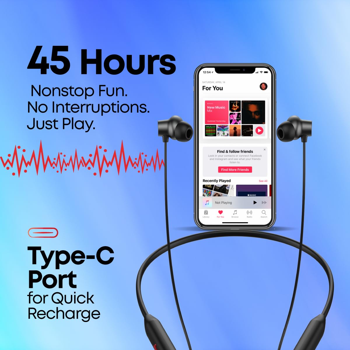 Portronics Harmonics Z11 PRO Upto 35 Hours Playtime, HD Call Clarity, Magnetic Earbuds, Type C Fast Charging