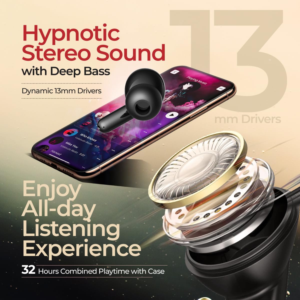 Portronics Twins S18 Pro in Ear TWS Earbuds with 30H Playtime, in Built HD Mic, Game/Music Mode, 13mm Dynamic Driver, Low Latency, Touch Control, Type C Fast Charging, Light Weight, Comfy Fit - Black