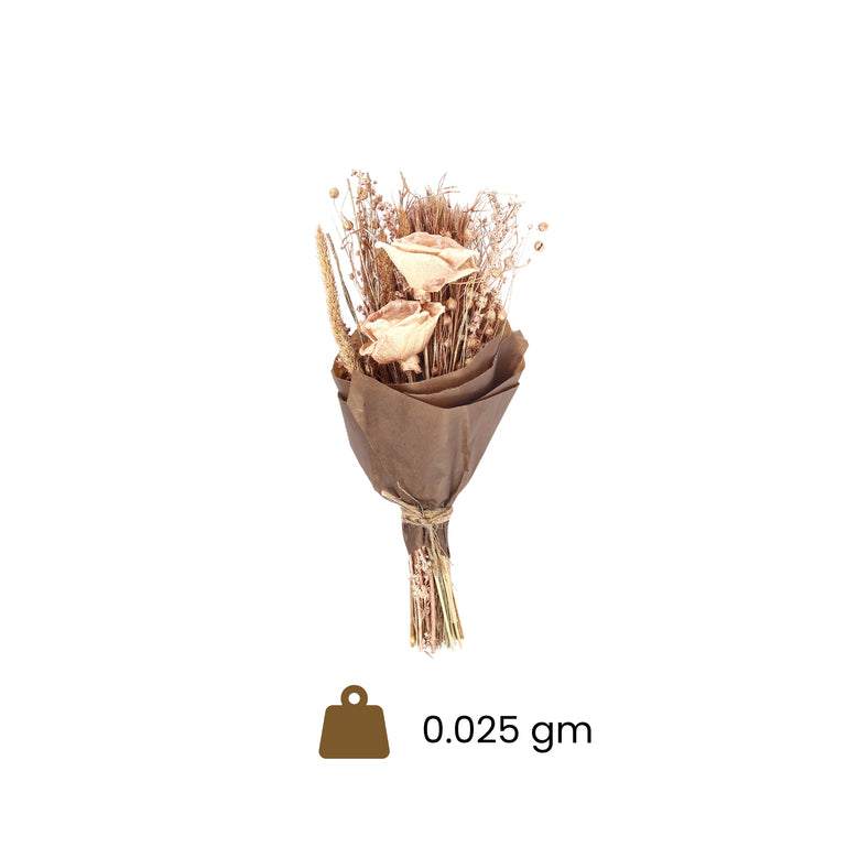 Surprise your loved ones with this stunning rose gold bouquet. Handcrafted Sholapith roses and radiant dried botanicals create a perfect blend of elegance and charm. Whether for a milestone celebration or a simple gesture of love, this bouquet turns moments into cherished memories.Naturally dried grass, and handmade Sholapith flower