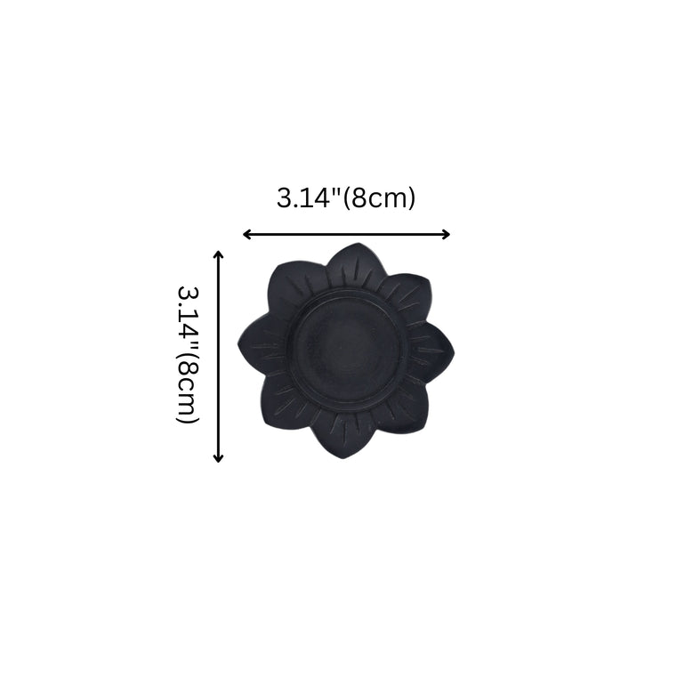 Envision a stunning T-light holder crafted from exquisite Palewa stone. Its unique flower-shaped design and deep black hue create a captivating visual effect. When lit, it casts a warm glow, bringing a serene atmosphere to any space.Soapstone
