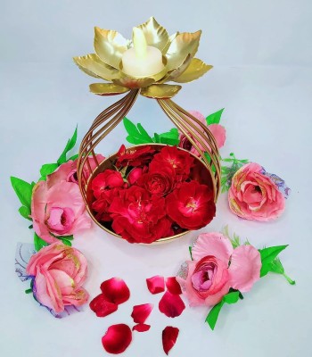Taar Phool Urli Bowl 9.5 Inch Decorative BowlAdd a Touch of Timeless Elegance to Your Decor! Enter a realm of sophistication with the MVB Taar Phool Urli Bowl, a beautiful 9.5-inch decorative item that is meant to introduce serenity, tradition, and beauty into any room. This exquisite urli bowl is specially designed with delicate wire detailing, elegantly cradling a lotus candle holder, achieving a perfect harmony of beauty and spirituality.