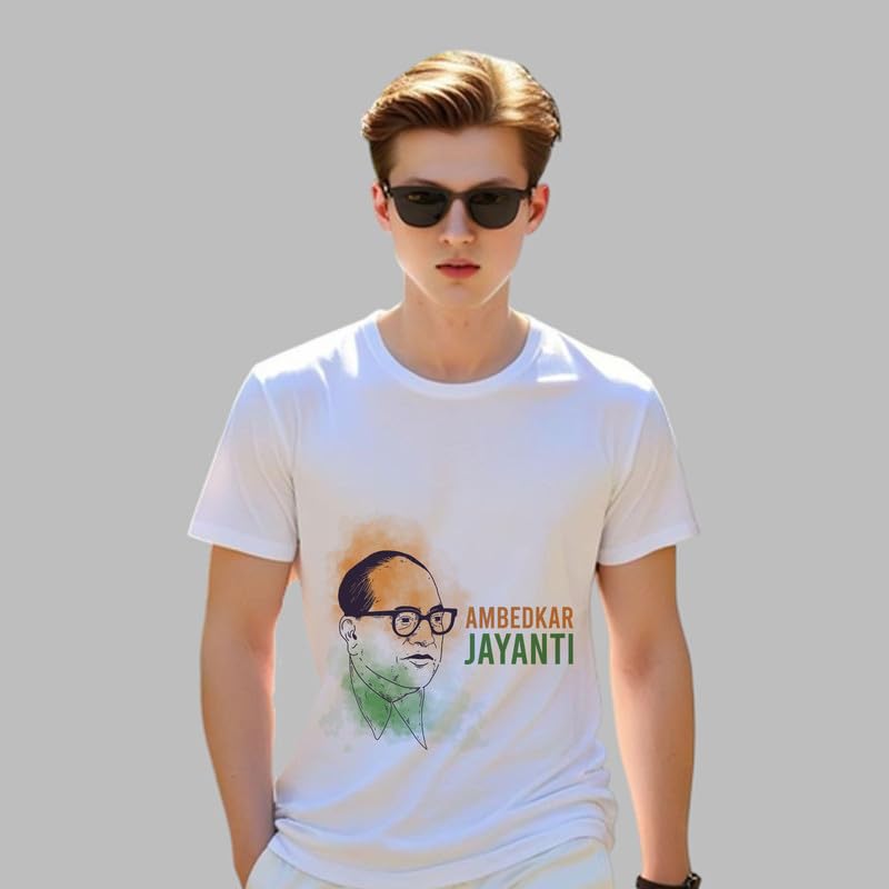 Product detailsMaterial compositionFabric_typeFit typeRegular FitSleeve typeShort SleeveStyleWesternCare instructionsMachine WashCountry of OriginIndiaAbout this item DESIGN: Classic round neck t-shirt featuring Bhim Rao Ambedkar Jayanti commemorative print on white background MATERIAL: Made from durable polyester fabric that offers comfort and easy maintenance STYLE: Versatile casual wear suitable for celebrations, social events, or daily use with a meaningful tribute design FIT: Regular fit t-shirt with comfortable neck opening and standard sleeve length for unrestricted movement CARE INSTRUCTIONS: Machine washable in cold water, gentle cycle recommended to maintain print quality