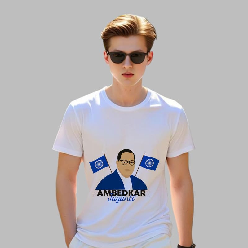 Product detailsMaterial compositionFabric_typeFit typeRegular FitSleeve typeShort SleeveLengthStandard LengthStyleWesternCare instructionsMachine WashCountry of OriginIndiaAbout this item DESIGN: Classic round neck t-shirt featuring Bhim Rao Ambedkar Jayanti commemorative print on white background MATERIAL: Made from durable polyester fabric that offers comfort and easy maintenance STYLE: Versatile casual wear suitable for celebrations, social events, or daily use with a meaningful tribute design FIT: Regular fit t-shirt with comfortable neck opening and standard sleeve length for unrestricted movement CARE INSTRUCTIONS: Machine washable in cold water, gentle cycle recommended to maintain print quality
