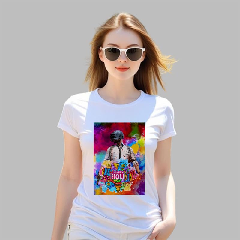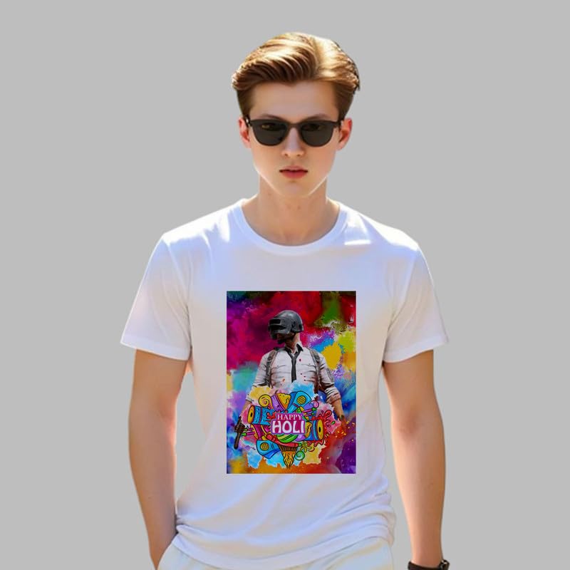 TERA MERA GIFT, Holi Printed T-Shirt, Happy Holi Festival T-Shirt, White Polyester, Reguler Fit, Round Neck, Short Sleeve, Unisex H101