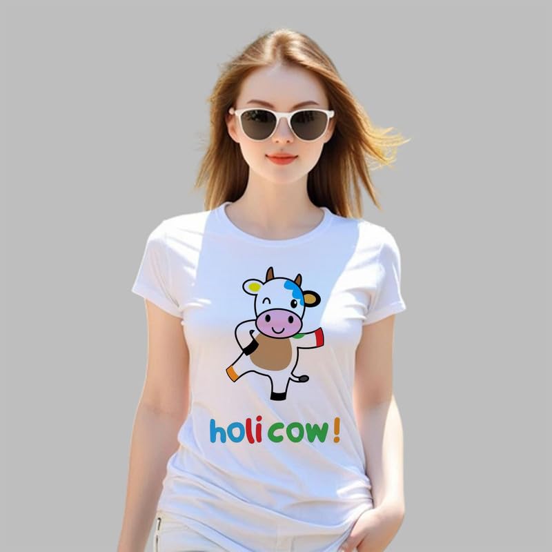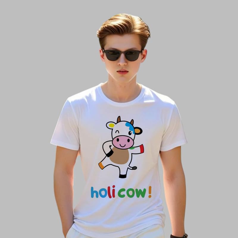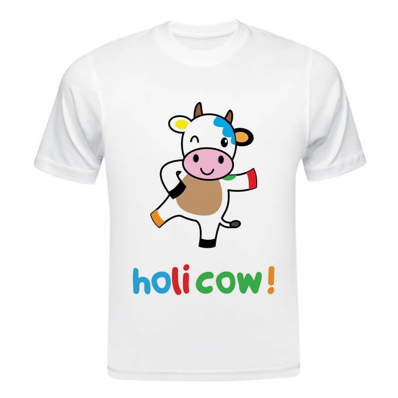 TERA MERA GIFT, Holi Printed T-Shirt, Happy Holi Festival T-Shirt, White Polyester, Reguler Fit, Round Neck, Short Sleeve, Unisex H103