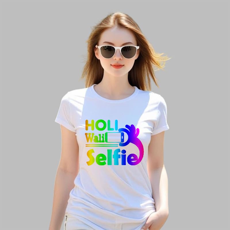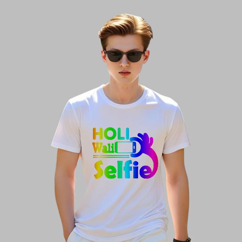 TERA MERA GIFT, Holi Printed T-Shirt, Happy Holi Festival T-Shirt, White Polyester, Reguler Fit, Round Neck, Short Sleeve, Unisex H106