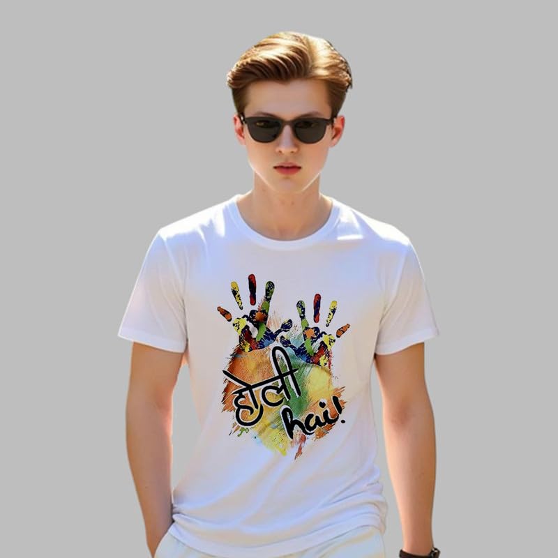 Product detailsMaterial compositionFabric_typeFit typeRegular FitSleeve typeShort SleeveLengthStandard LengthStyleWesternCare instructionsMachine WashCountry of OriginIndiaAbout this item MATERIAL: Premium white polyester fabric that offers comfort and durability for celebrating the festival of colours DESIGN FEATURES: Round neckline and short sleeves provide a classic, comfortable fit suitable for all-day wear VERSATILE FIT: Regular fit design ensures comfortable wear for both men and women, making it truly unisex FESTIVAL THEME: Features a vibrant Holi-themed print that perfectly captures the spirit of the colourful spring festival STYLE: Perfect casual wear t-shirt that combines traditional festival elements with modern fashion sensibilities