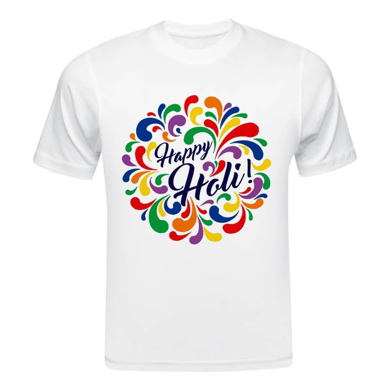 TERA MERA GIFT, Holi Printed T-Shirt, Happy Holi Festival T-Shirt, White Polyester, Reguler Fit, Round Neck, Short Sleeve, Unisex H118