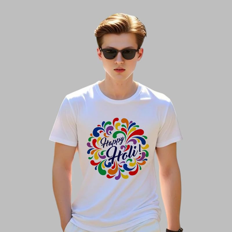Product detailsMaterial compositionFabric_typeFit typeRegular FitSleeve typeShort SleeveLengthStandard LengthStyleWesternCare instructionsMachine WashCountry of OriginIndiaAbout this item MATERIAL: Premium white polyester fabric that offers comfort and durability for celebrating the festival of colours DESIGN FEATURES: Round neckline and short sleeves provide a classic, comfortable fit suitable for all-day wear VERSATILE FIT: Regular fit design ensures comfortable wear for both men and women, making it truly unisex FESTIVAL THEME: Features a vibrant Holi-themed print that perfectly captures the spirit of the colourful spring festival STYLE: Perfect casual wear t-shirt that combines traditional festival elements with modern fashion sensibilities
