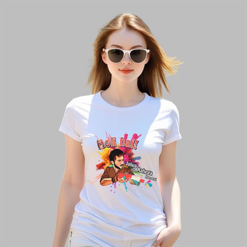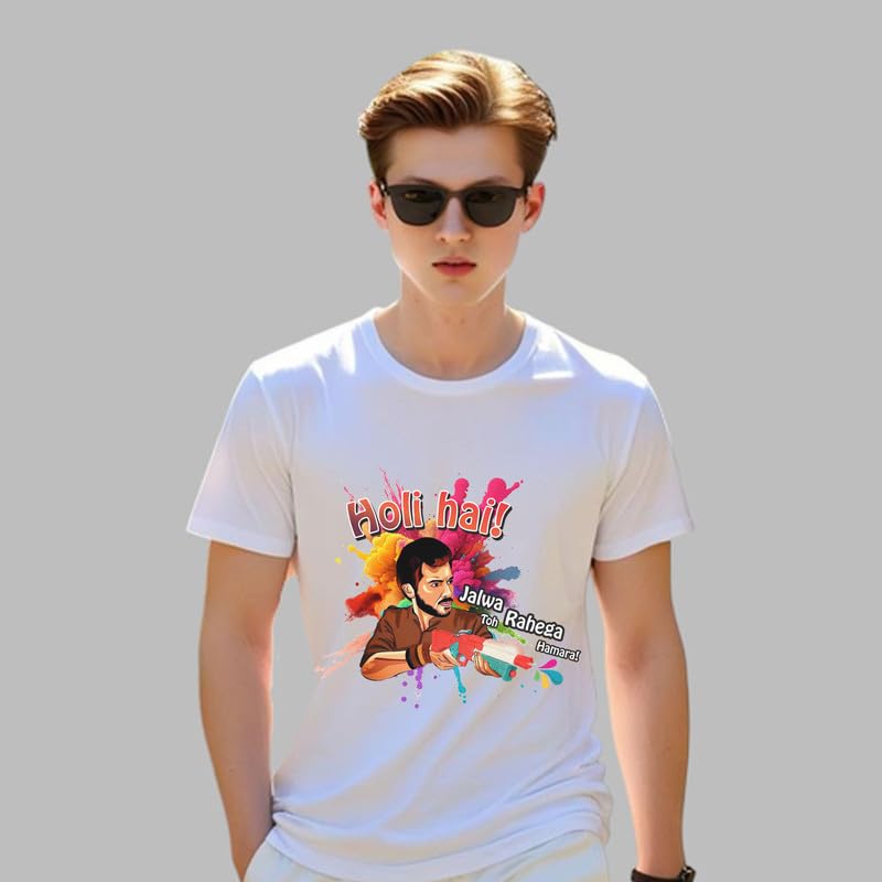 TERA MERA GIFT, Holi Printed T-Shirt, Happy Holi Festival T-Shirt, White Polyester, Reguler Fit, Round Neck, Short Sleeve, Unisex H124