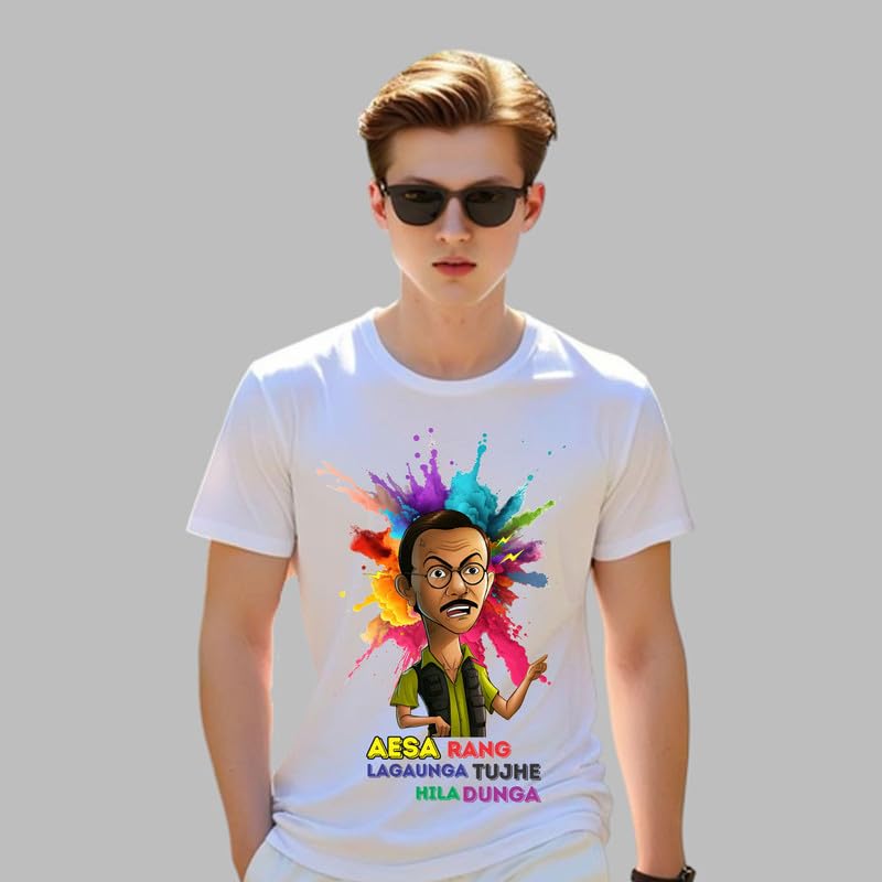 Product detailsMaterial compositionFabric_typeFit typeRegular FitSleeve typeShort SleeveLengthStandard LengthStyleWesternCare instructionsMachine WashCountry of OriginIndiaAbout this item MATERIAL: Premium white polyester fabric that offers comfort and durability for celebrating the festival of colours DESIGN FEATURES: Round neckline and short sleeves provide a classic, comfortable fit suitable for all-day wear VERSATILE FIT: Regular fit design ensures comfortable wear for both men and women, making it truly unisex FESTIVAL THEME: Features a vibrant Holi-themed print that perfectly captures the spirit of the colourful spring festival STYLE: Perfect casual wear t-shirt that combines traditional festival elements with modern fashion sensibilities