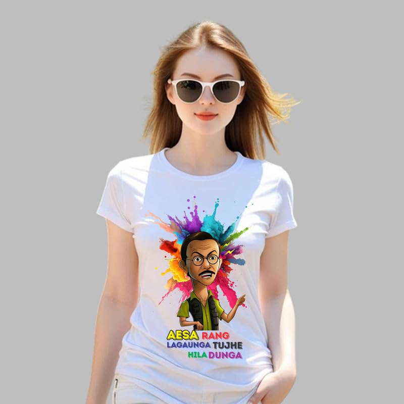 TERA MERA GIFT, Holi Printed T-Shirt, Happy Holi Festival T-Shirt, White Polyester, Reguler Fit, Round Neck, Short Sleeve, Unisex H126