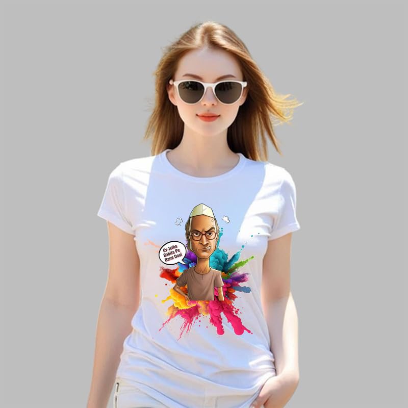 TERA MERA GIFT, Holi Printed T-Shirt, Happy Holi Festival T-Shirt, White Polyester, Reguler Fit, Round Neck, Short Sleeve, Unisex H127