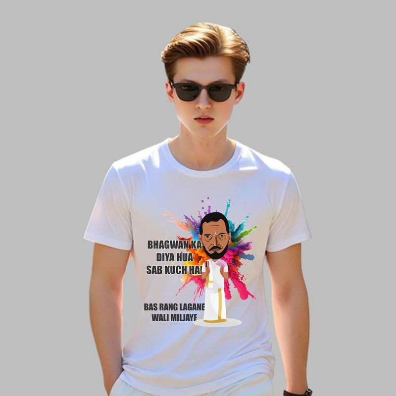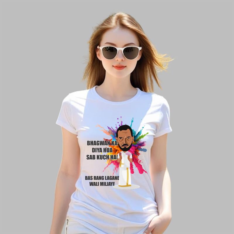 TERA MERA GIFT, Holi Printed T-Shirt, Happy Holi Festival T-Shirt, White Polyester, Reguler Fit, Round Neck, Short Sleeve, Unisex H131