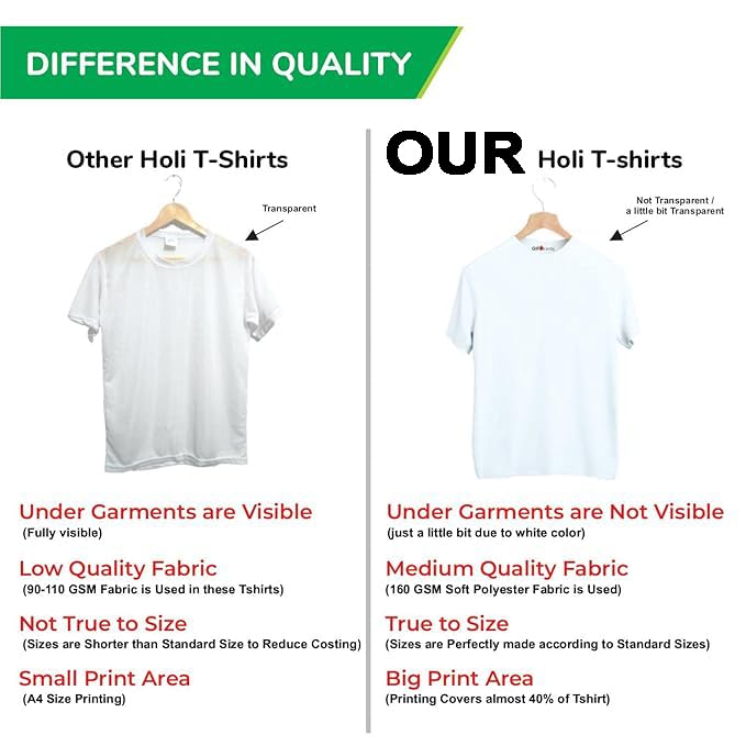 Product detailsMaterial compositionFabric_typeFit typeRegular FitSleeve typeShort SleeveLengthStandard LengthStyleWesternCare instructionsMachine WashCountry of OriginIndiaAbout this item MATERIAL: Premium white polyester fabric that offers comfort and durability for celebrating the festival of colours DESIGN FEATURES: Round neckline and short sleeves provide a classic, comfortable fit suitable for all-day wear VERSATILE FIT: Regular fit design ensures comfortable wear for both men and women, making it truly unisex FESTIVAL THEME: Features a vibrant Holi-themed print that perfectly captures the spirit of the colourful spring festival STYLE: Perfect casual wear t-shirt that combines traditional festival elements with modern fashion sensibilities