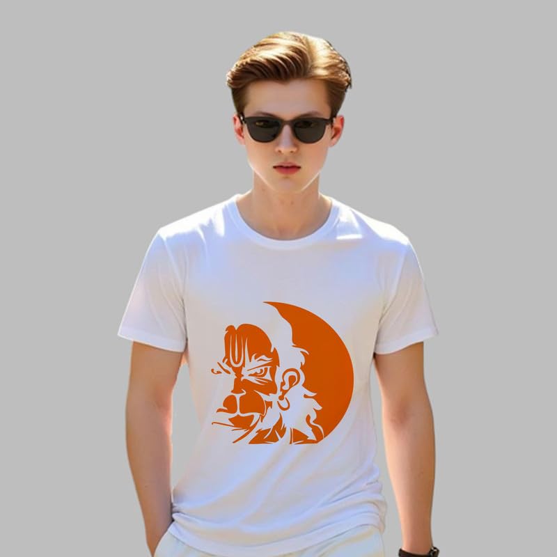 TERA MERA GIFT, Shri Hanuman Jayanti Graphic T-Shirt, White Polyster, Religious Festival Design AA15