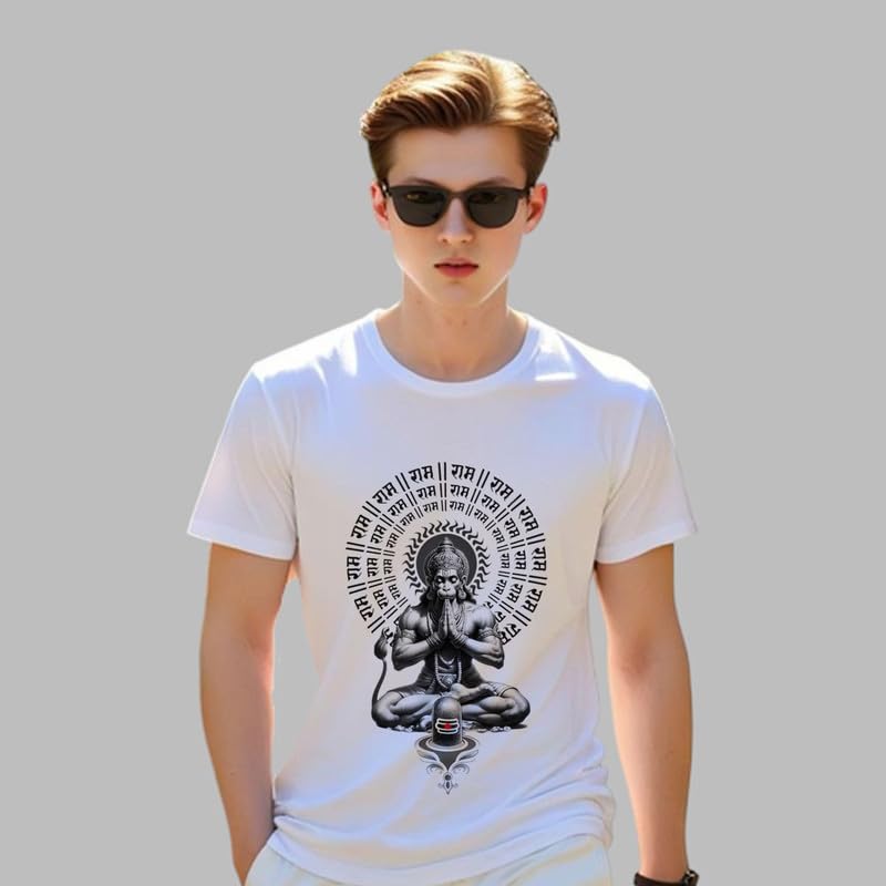 TERA MERA GIFT, Shri Hanuman Jayanti Graphic T-Shirt, White Polyster, Religious Festival Design AA2