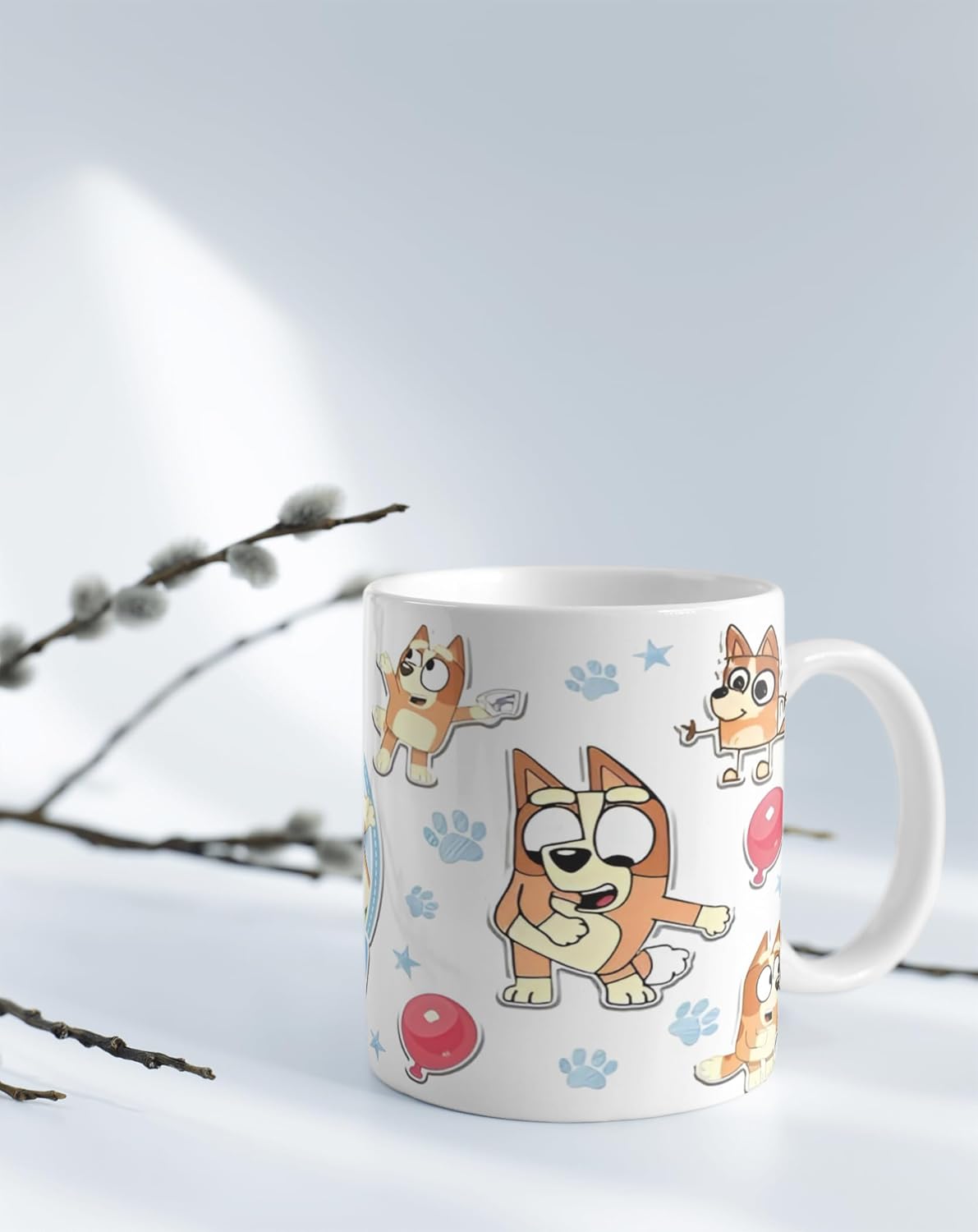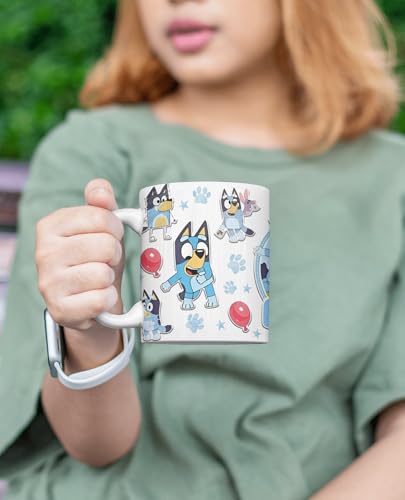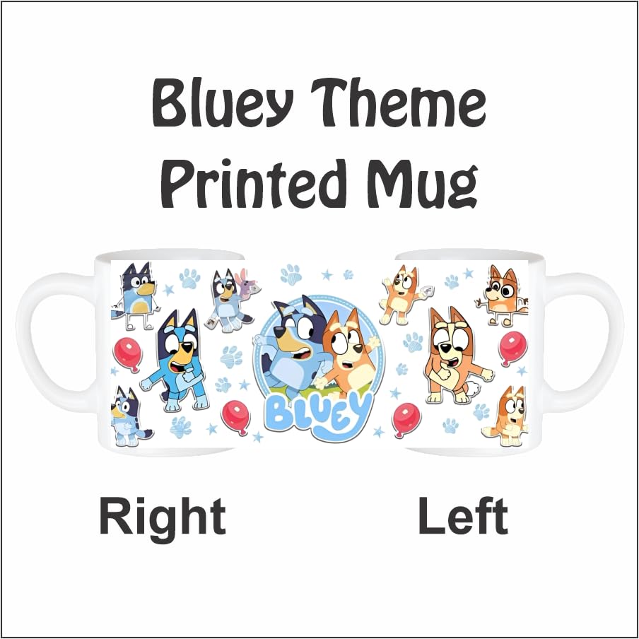 Brand TERA MERA GIFTColour WhiteSpecial Feature Dishwasher SafeStyle Cartoon Character ThemeTheme Bluey ThemeRecommended Uses For Product Hot BeveragesIncluded Components Ceramic MugSpecific Uses For Product Hot BeveragesShape CylindricalPattern Bluey Theme About this item Fun Cartoon Design: Features lively and colorful cartoon dog illustrations that bring a smile to every kids face. Kid-Friendly Size: Designed with a child-friendly grip for small hands to hold and sip comfortably. Microwave Safe: Heat milk or cocoa easilycompletely safe for microwave use. Durable Ceramic Build: Crafted from high-quality ceramic that resists cracks and daily wear. Dishwasher Safe: Easy to clean for parentssafe to put in the dishwasher without fading prints. Perfect Gift Choice: Ideal gift for kids birthdays, return favors, holidays, or fun surprises. Vibrant and Long-Lasting Print: Fade-resistant high-definition print stays bright even after many washes. Multifunctional Use: Great for milk, hot chocolate, juice, smoothies or even as a cute pen holder.