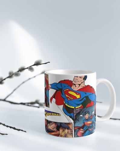 Iconic Superman Design: Features multiple comic-style Superman illustrations for a dynamic and bold lookPremium Ceramic Quality: Made from durable, heat-resistant ceramic that ensures long-lasting usePerfect Gift for Fans: Ideal gift for Superman lovers, comic book collectors, and superhero fans of all agesMicrowave & Dishwasher Safe: Easy to clean and convenient for everyday useGreat for Home or Office: Adds a fun and heroic vibe to any coffee table, desk, or kitchen counterVibrant, Fade-Resistant Print: Long-lasting print that wont fade with regular washing350ml Capacity: Perfect size for your favorite hot beverages like coffee, tea, or cocoaUniversal Appeal: Suitable for kids, teens, and adults makes every sip super-powered