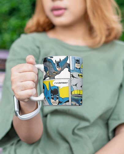 Batman comic book theme printed in vivid, bold colors325ml capacity perfect for coffee, tea, or hot cocoaIdeal gift for boys, teens, and adult superhero fansDurable high-quality ceramic constructionMicrowave and dishwasher safe for everyday useErgonomic handle for a comfortable, secure gripGreat for home, office, or collectible displayOfficially styled fan-favorite Batman design