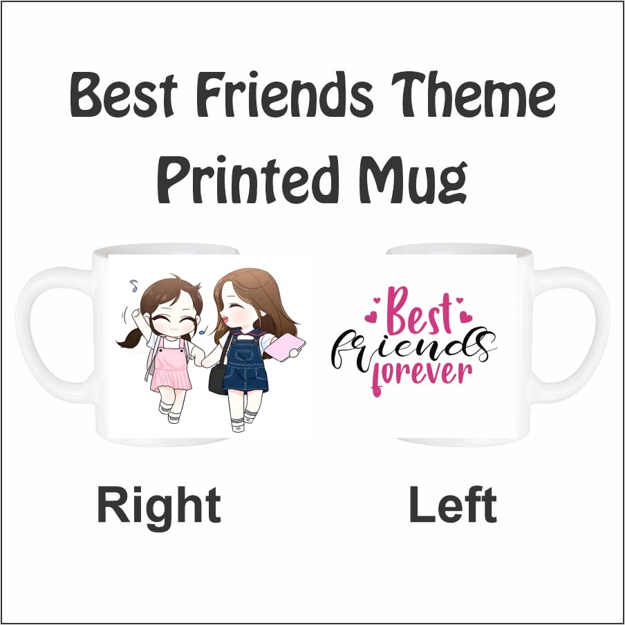 Adorable Best Friends Forever theme with cartoon design325ml capacity ideal for coffee, tea, or any hot beverageMade from high-quality ceramic for durabilityMicrowave and dishwasher safe for everyday convenienceVibrant, fade-resistant printing on both sidesThoughtful gift for best friends, sisters, or roommatesPerfect for birthdays, Friendship Day, or just becauseA sentimental keepsake to celebrate lasting bonds