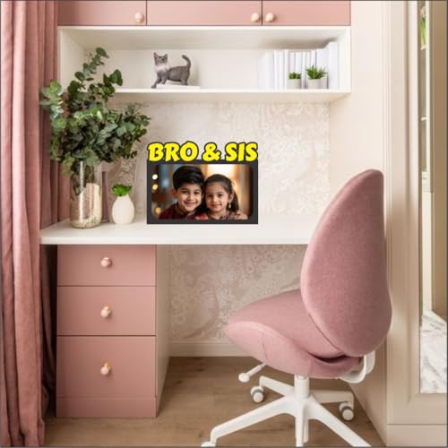 Celebrate your unique bond with this charming Bro & Sis themed photo frame, a delightful way to display cherished memories together.The stylish black and yellow color combination adds a touch of vibrancy & warmth to any room, complementing various interior design styles.Showcase your favorite snapshots in this frame, reminding you of the special connection and love shared with your sibling.Makes a thoughtful and heartwarming gift for Raksha Bandhan, birthdays, anniversaries, or any occasion to appreciate your brother or sister.Ideal for displaying on desks, shelves, or walls, this versatile frame adds a personal touch to your home or office decor, evoking sweet memories.