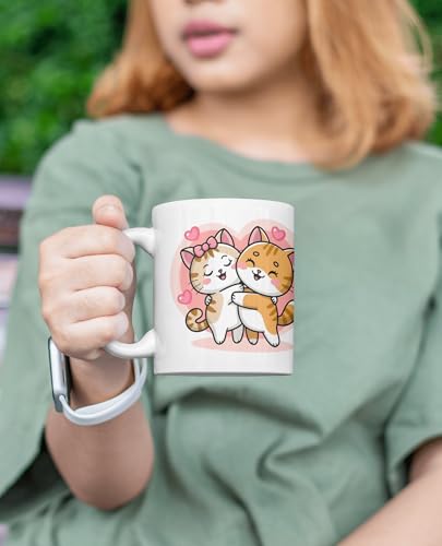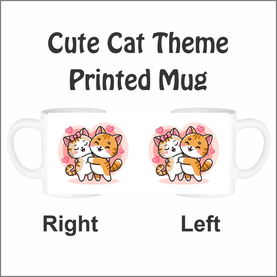 The Magical Gifts Cute Cat Couple Printed Mug 325ml Gift for Cat Lovers Kids Friends Girlfriend Animal Theme Ceramic Cup Adorable Kitty Coffee Mug for Daily Hot Beverages