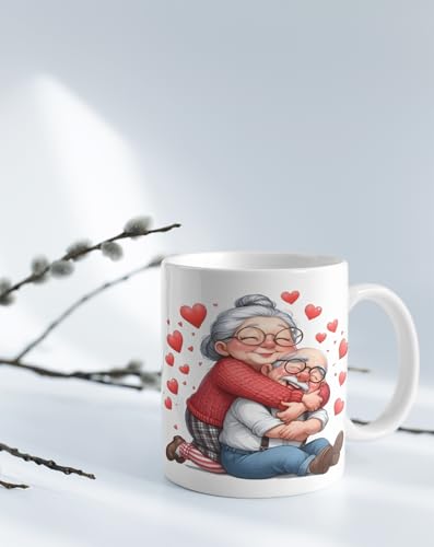 Heartwarming Grandparents Design Adorable illustration of a loving elderly couple hugging surrounded by hearts perfect for celebrating lasting love.High-Quality Ceramic Build Crafted with premium ceramic material for durability and a polished smooth finish.Microwave and Dishwasher Safe Easy to clean and safe to use for heating beverages without any fading.Generous 325ml Capacity Holds your favorite hot drinks like coffee tea or hot chocolate with ease.Perfect Gift for Grandparents Ideal for birthdays anniversaries retirements or Grandparents Day.Comfortable Grip Handle Ergonomically designed handle ensures a secure and comfortable hold for daily use.Bright Long-Lasting Print Vibrant heart-filled design that stays vivid even after multiple washes.Sentimental Everyday Use A sweet reminder of unconditional love perfect for home kitchen or office mug collection.
