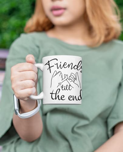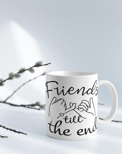 Elegant design with Friends till the end and pinky promise325ml capacity suitable for coffee, tea, or any beverageCrafted from durable, high-quality ceramic materialDishwasher and microwave safe for daily convenienceMinimalist black-and-white art adds emotional depthThoughtful gift for friends, BFFs, or childhood buddiesPerfect for birthdays, Friendship Day, and just-because giftsLightweight, sturdy mug for home, office, or school use