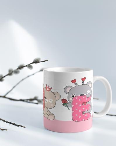 The Magical Gifts Love Theme Printed Mug 325ml for Girlfriend Boyfriend Couples Anniversary Romantic Gift for Wife Husband Valentine Coffee Tea Cup Cute Teddy Design