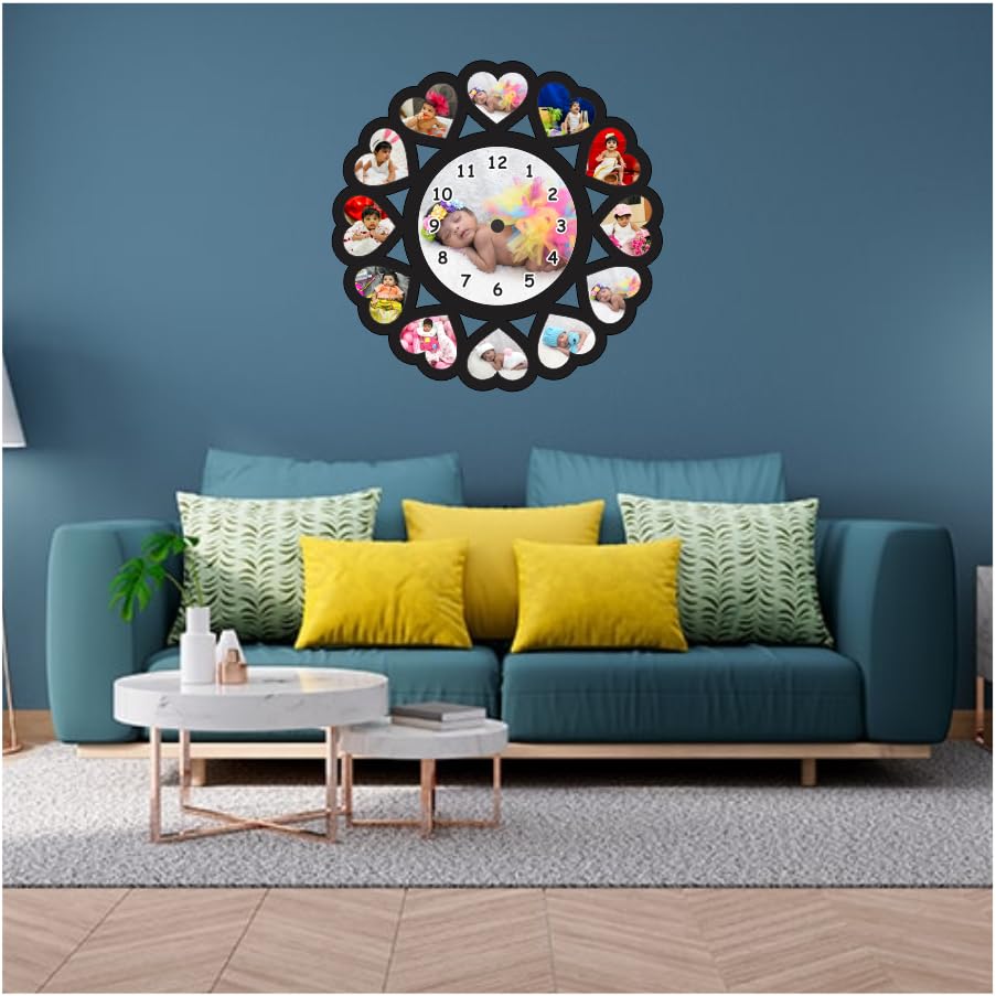 The Magical Gifts Personalized Baby Photo Wall Clock with 13 Picture Slots Unique Heart Design Gift for Newborn Baby Shower Birthday Nursery Keepsake Room D?cor Clock (12 X 12 Inch)