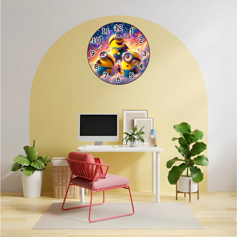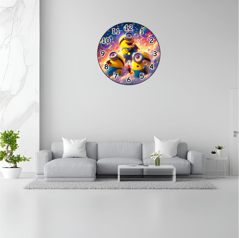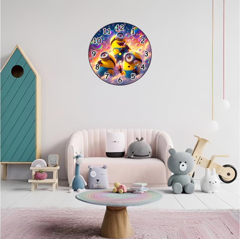 Features three adorable Minion characters blowing bubbles.Colorful and playful design that kids will love.Large easy-to-read numbers for children.Perfect for bedrooms playrooms or nurseries.A fun and functional gift for Minions fans.
