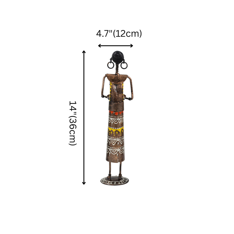 Check out this stunning collection of tribal women's showpieces and celebrate the essence of Indigenous culture. Crafted from high-quality iron, these statues highlight exceptional beauty and charm. Every figure showcases exquisite hand-painted designs, emphasising traditional patterns and motifs in a captivating way.Iron