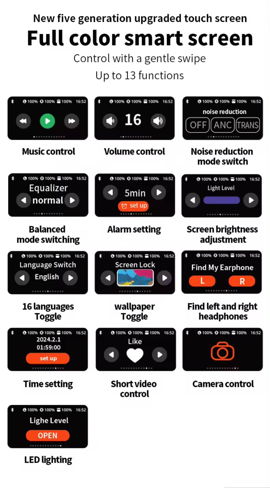 VEhop A9 TouchScreen ANC Bluetooth True Wireless (TWS) In Ear 32 Hours Playback Active Noise cancellation IPX4(Splash & Sweat Proof) Black