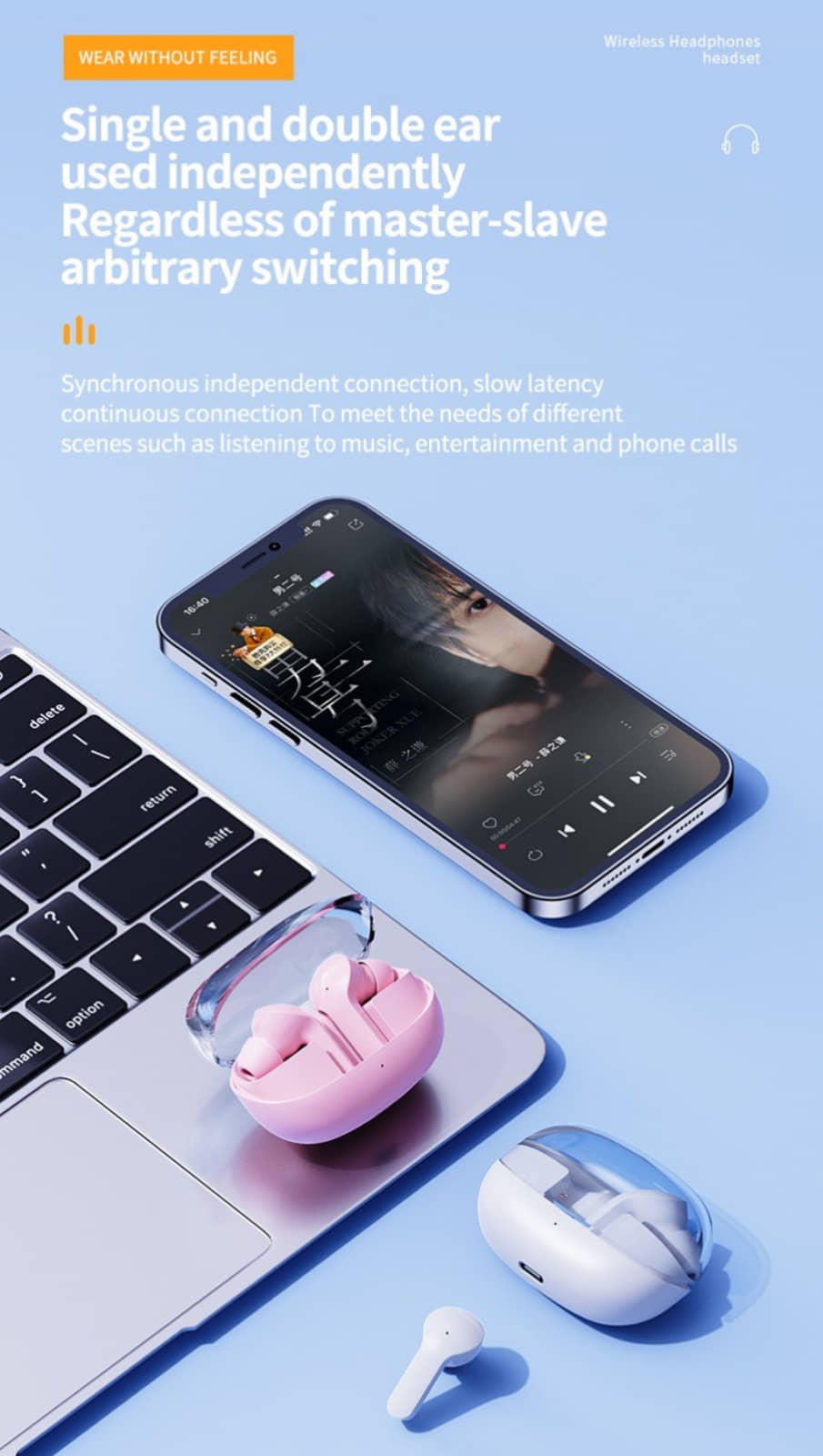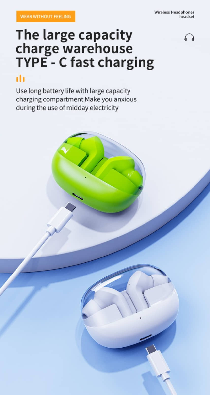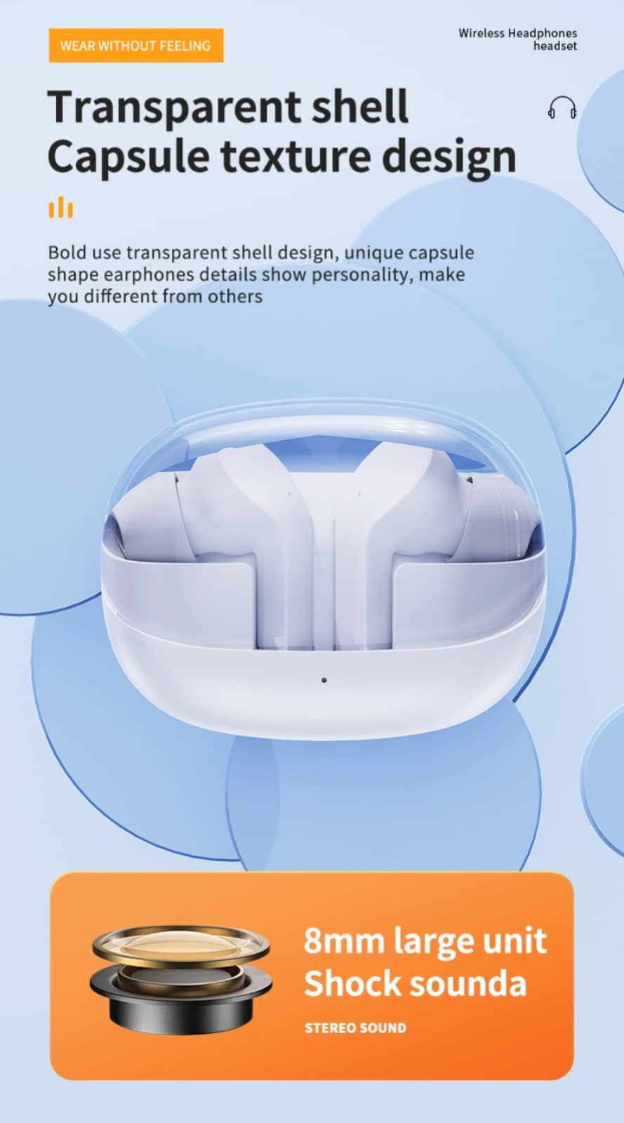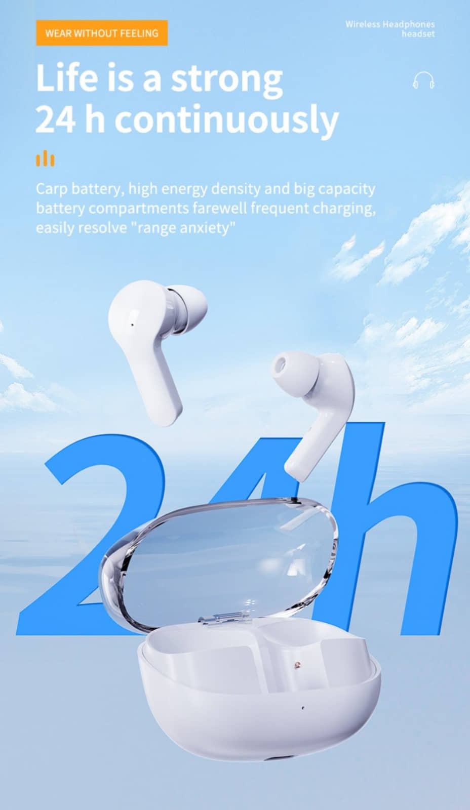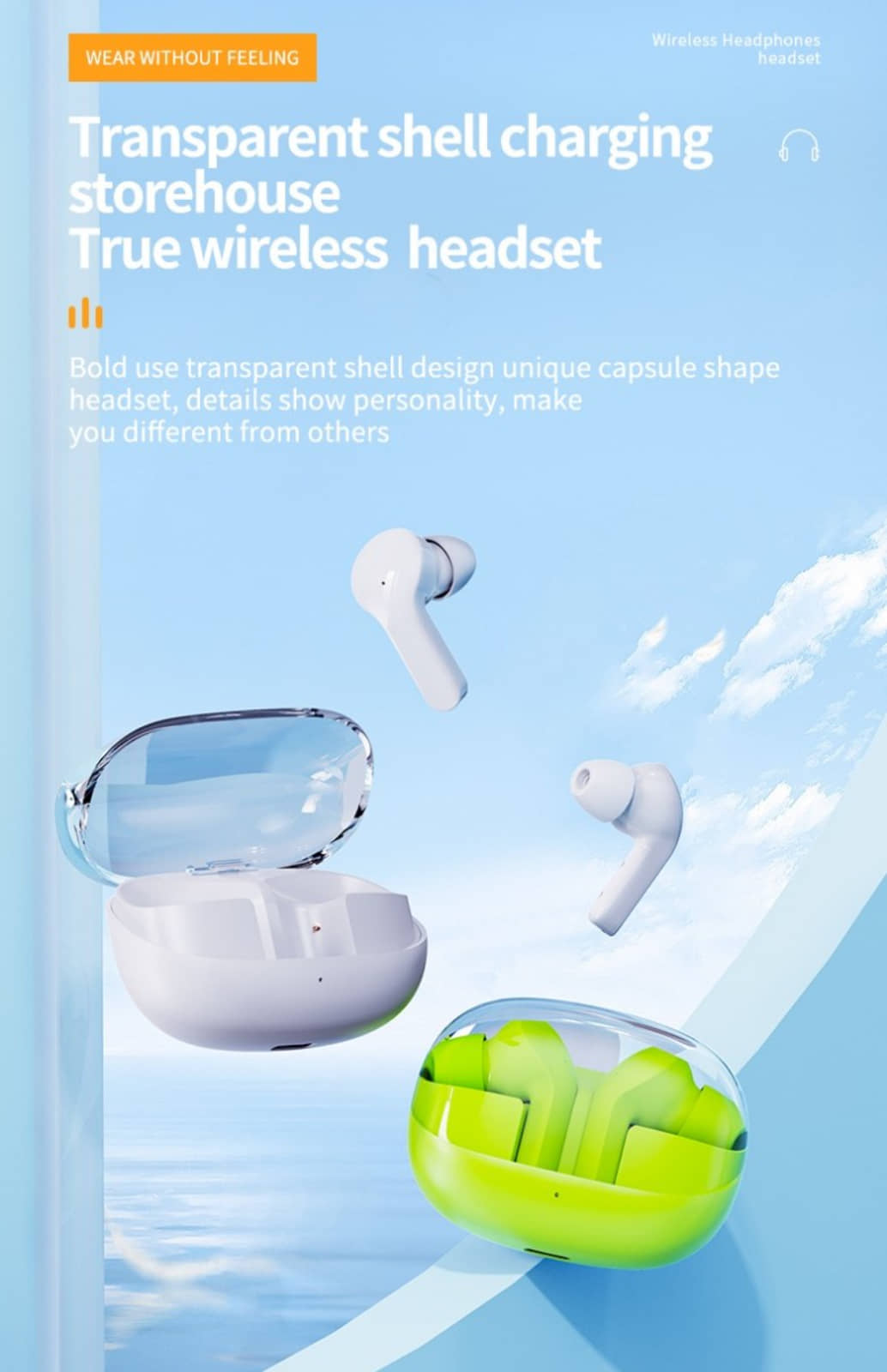 VEhop G2 Transparent Bluetooth True Wireless (TWS) In Ear 24 Hours Playback Powerfull bass,Fast charging IPX4(Splash & Sweat Proof) White