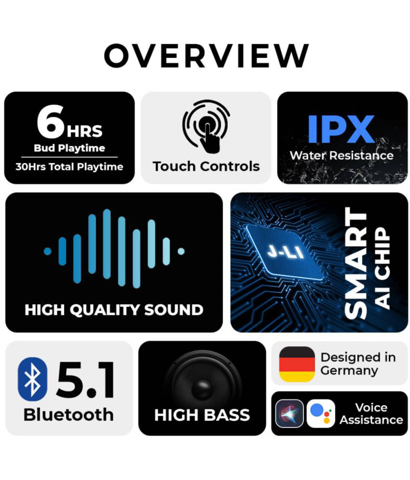 VEhop POWER In Ear True Wireless (TWS) 30 Hours Playback IPX4(Splash & Sweat Proof) Low Latency,Powerfull bass -Bluetooth V 5.1 Assorted