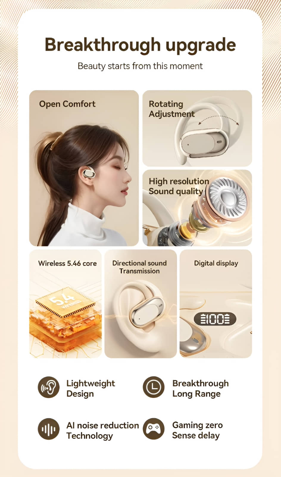 Feel your music, never the weight of your earbuds. Wireless earbuds designed for ease and flexibility.