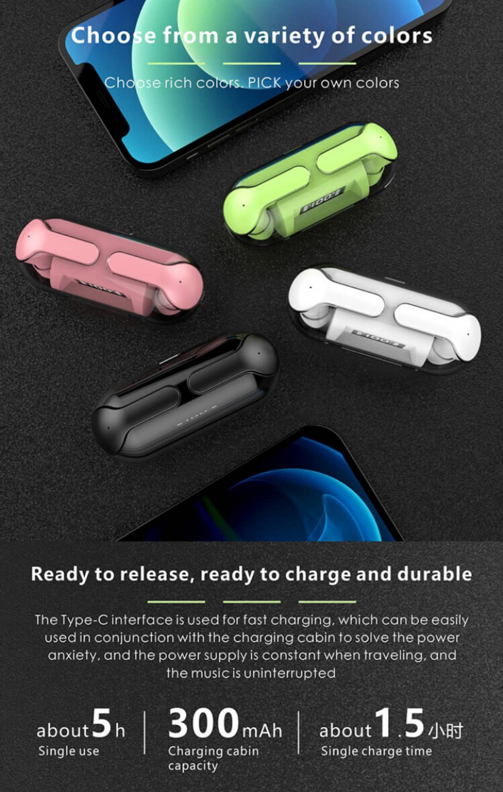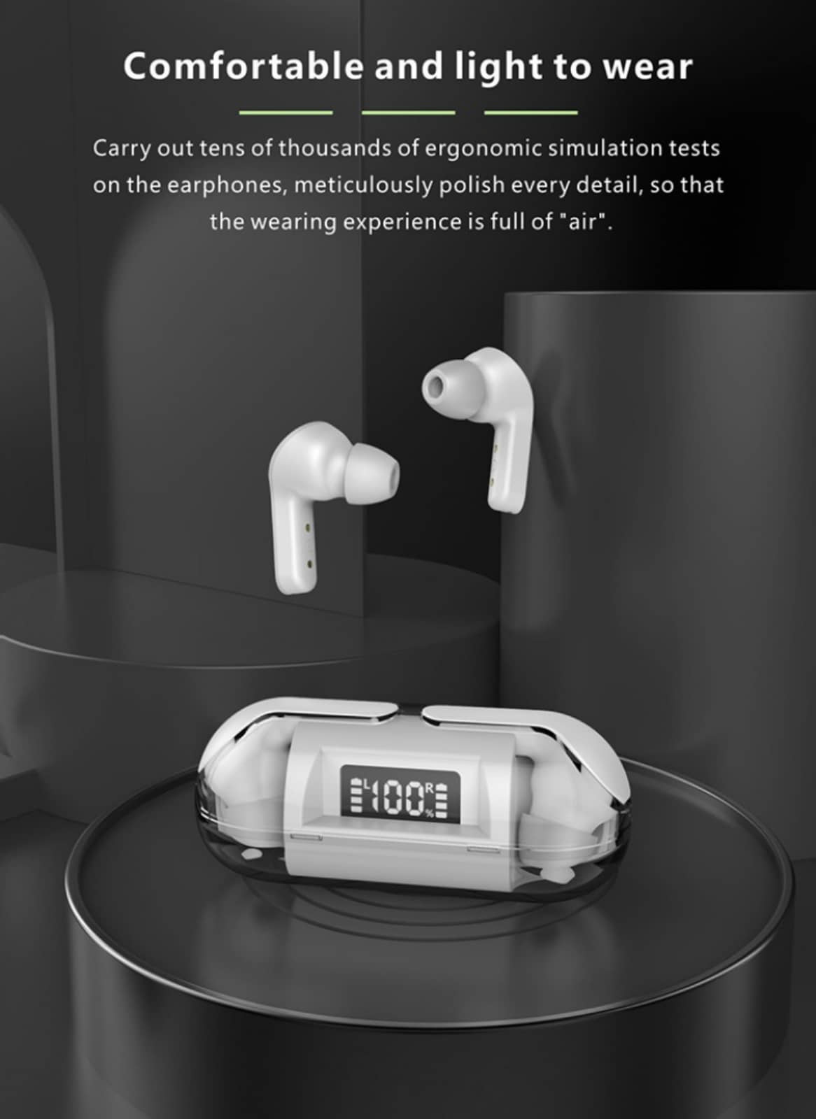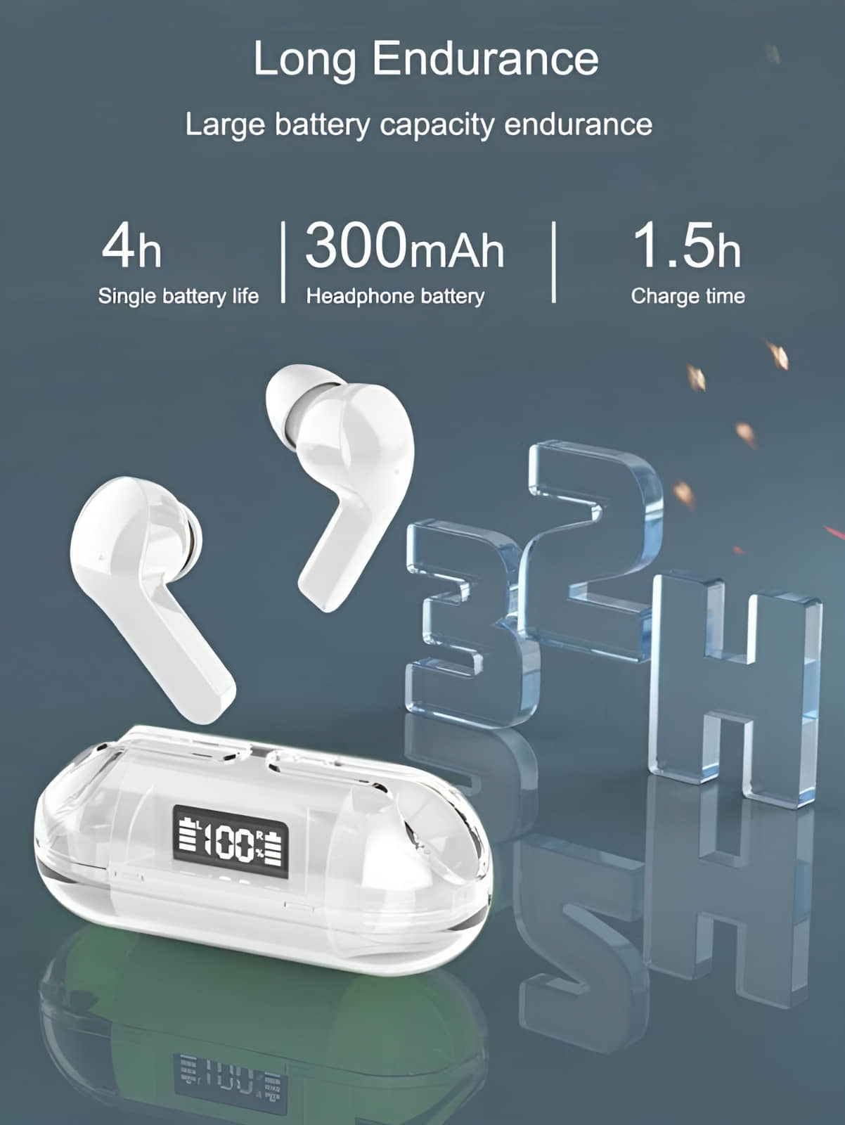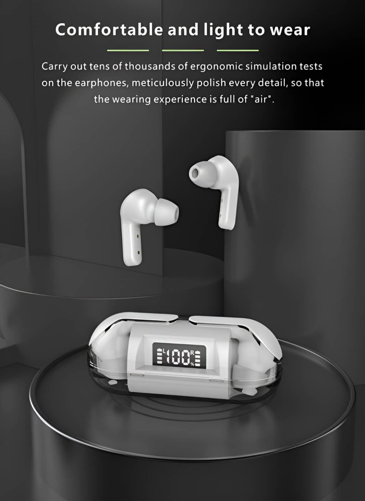 VEhop Transparent PRO Bluetooth True Wireless (TWS) In Ear 30 Hours Playback Fast charging,Powerfull bass IPX4(Splash & Sweat Proof) White