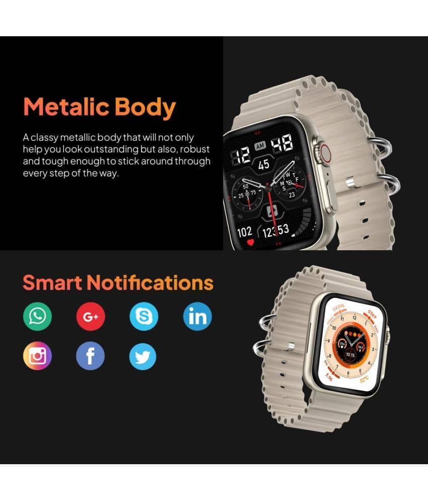 GIONEE Ufit 6 Bluetooth Calling Metallic Frame Smartwatch (Grey Strap, Free Size)_426clone.