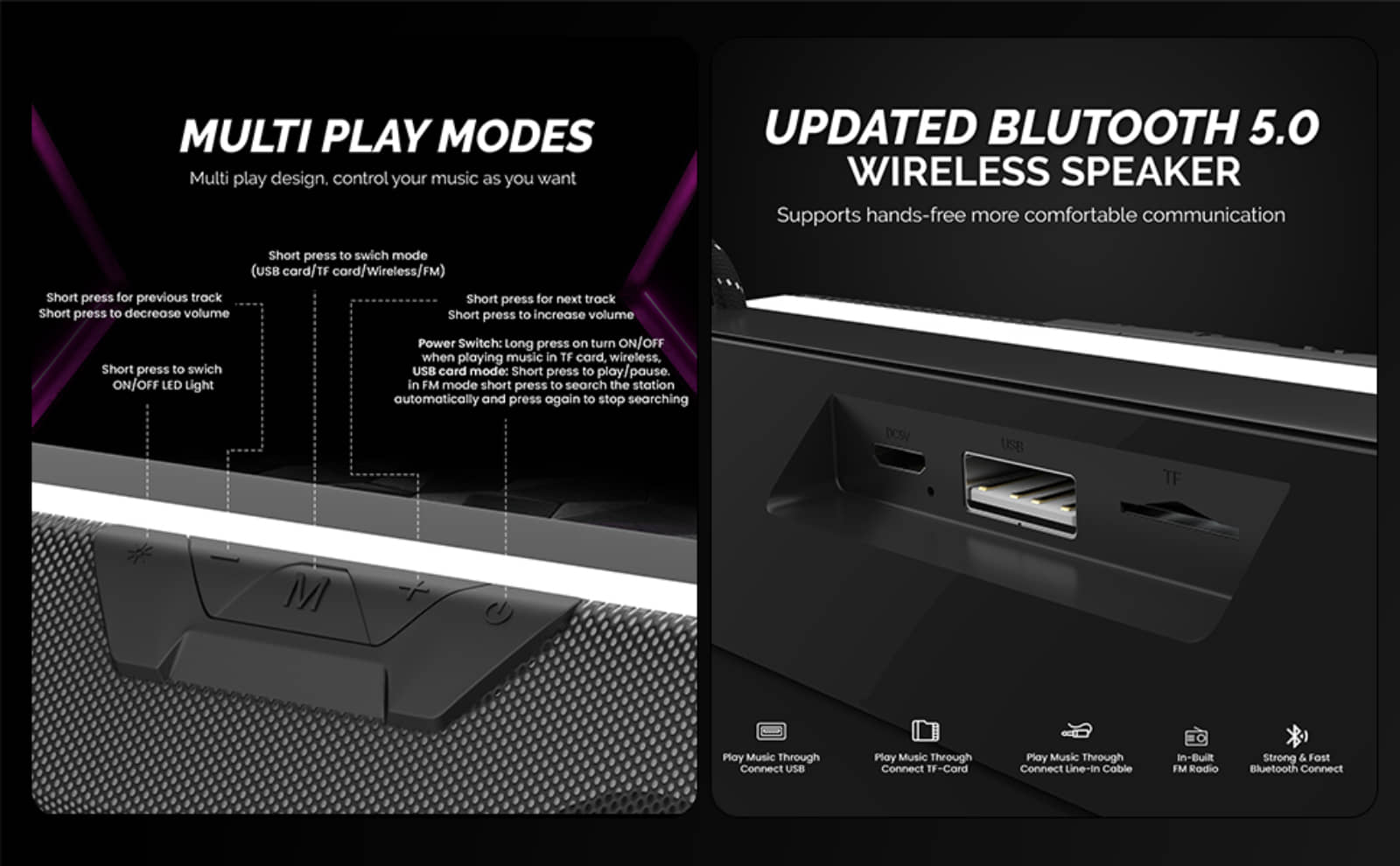 Portronics Talk Six 10W Bluetooth Speaker, Upto 4 Hours Playtime, 360 Degree LED Light, Bluetooth Version 5.3